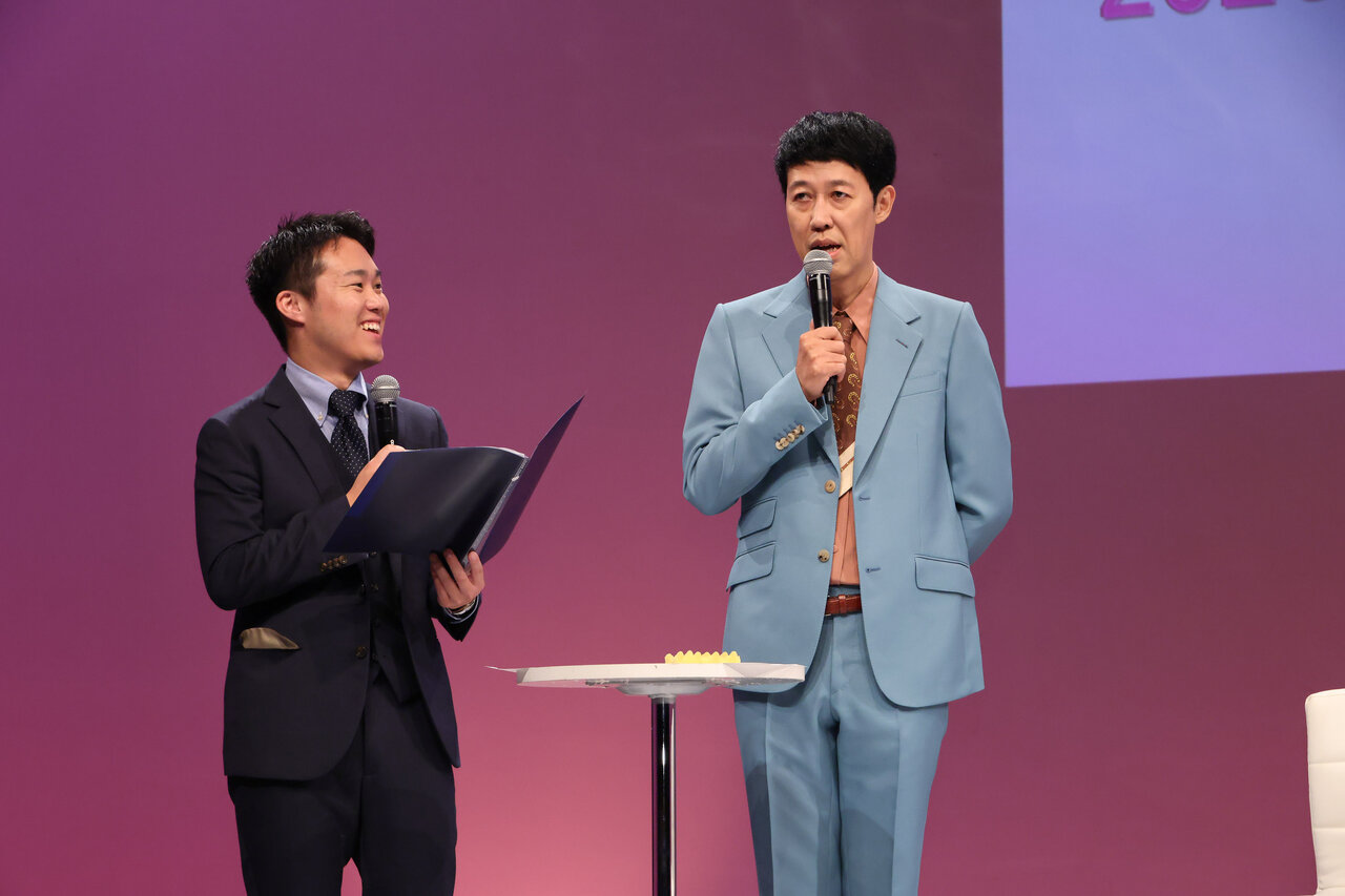 『攻殻機動隊 THE GHOST IN THE SHELL』の応援ゲストとして登壇した岩井は「攻殻機動隊は、多くの作品に影響を与えてきた世界観そのものが魅力」と紹介し、「80年代の段階で“電脳”や“身体拡張”などを描いた革新性があり、それをサイエンスSARUが現代でどう表現するのか楽しみです」と語りました。『超巡!超条先輩』応援ゲストの宮田は「9割5分はふざける作品」と言い切りつつも、「不意に泣ける瞬間がある」と余韻のある魅力を熱弁。肩の力を抜いて楽しめる作風でありながら、ふと心に刺さるようなシーンもあるため、今回のラインナップの中でも最も入り口の広い作品だと紹介し、短い時間で気軽に楽しみたい層から物語性を求める層まで、幅広く届く作品だとアピールしました。『マリッジトキシン』の応援ゲストの井上は本作を「“なんだこの能力!?”と、次々に驚かされるタイプの物語」と紹介。「少年ジャンプ+」での累計閲覧数がすでに2億4000万回(10月22日時点)を突破している点にも触れ、“漫画・アニメファン待望のアニメ化”として期待を寄せていました。