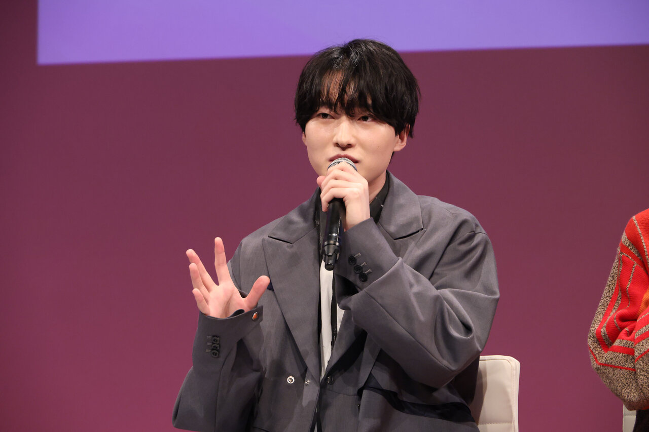 続いての話題は、キャスト陣が特にこだわった“声”の表現へ。まず安田は「オーディションをするにあたって、このヒロイン役の人たちと掛け合わせていって、同じスタジオで4人ぐらい並んでスタジオオーディションをしたんですけど、隣のマイクで歌っている人が、僕が読んだ瞬間に明らかに“うるせえ”という雰囲気を感じたので、これはやったぜって思いました」と振り返り、会場を沸かせました。続けて瀬戸は、「山吹有栖くんが“その声を探したい、その声の主を探したい”って思うくらい魅力的な声であり、魅力的な話し方であり、素晴らしい歌声だったということを我々は役者として演じなきゃいけない。この声になって改めて“魅力的な声ってなんだろう”って、1から考える作業をしたので、とても新鮮な気持ちでマイクの前に立たせていただきました」と語り、この作品ならではの役作りの難しさを明かしました。大久保は「(原作の)先生方は、1つの作品を作るのにものすごいエネルギーや、自分の愛情をかけて作っていらっしゃるので、その“愛情をかけて生み出した子”を、私たちは“声”という形でお預かりしている感覚なんです。だから、寧々がすごくきついことを言う時に、私がそのまま“きつい芝居”をしてしまうと、こんなにかわいい目をしている子が“ただ嫌な子”に見えてしまわないか……みたいなことを、すごく考えたりしています」とコメント。声優陣のこだわりを聞いた小籔が「ここまで考えてはるとは思ってなかった」と返すと、客席には柔らかな笑いが広がりました。