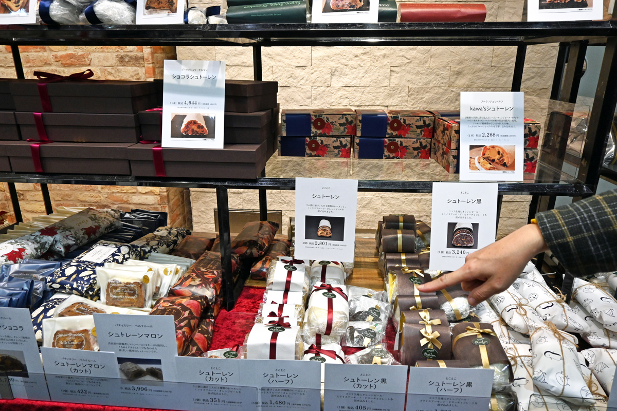 また、カット売りが人気の理由には、味のバリエーションが増えていることもあるようです。「最近は定番のプレーンのほか、抹茶、ほうじ茶、りんご、いちごなどの個性を出したものが増えてきています。種類が選べて自由になったことでよりシュトーレンが楽しめるようになったというのもありますね」(売り場担当者)と、「カット売り」で多彩な味を気軽に食べ比べができることも魅力になっていると分析します。
