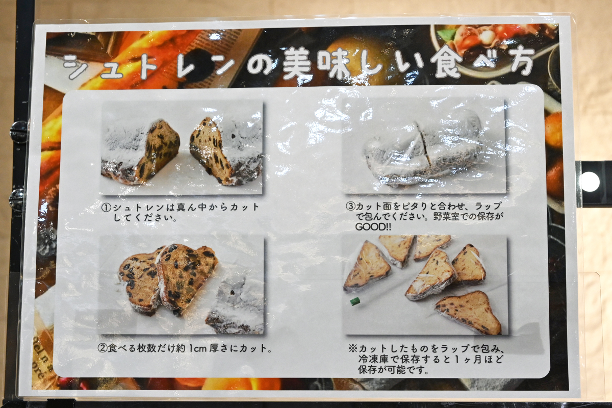 スライスしたシュトーレンを1枚ずつ購入できる「カット売り」は3年ほど前から力を入れており好評だそうです。1本あたり2,000〜4,000円ほどするため、リーズナブルな「カット売り」でいろんな味を試して、気に入ったショップのシュトーレンを再来店して1本買いすることも多いとのこと。