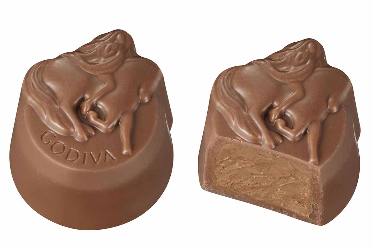 また、「ゴディバ」のシンボルマークにも馬が描かれています。領民のために自らを犠牲にした11世紀の英国の伯爵夫人レディ・ゴディバの勇気と深い愛に感銘した創始者がブランド名に冠し、彼女が領民を救うために馬にまたがった姿を描いたものです。