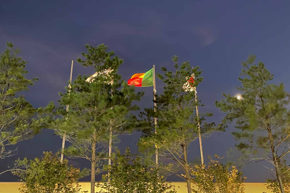 万博会場内の迎賓館にはナショナルデーの国の国旗が掲揚されます(2025年8月26日)