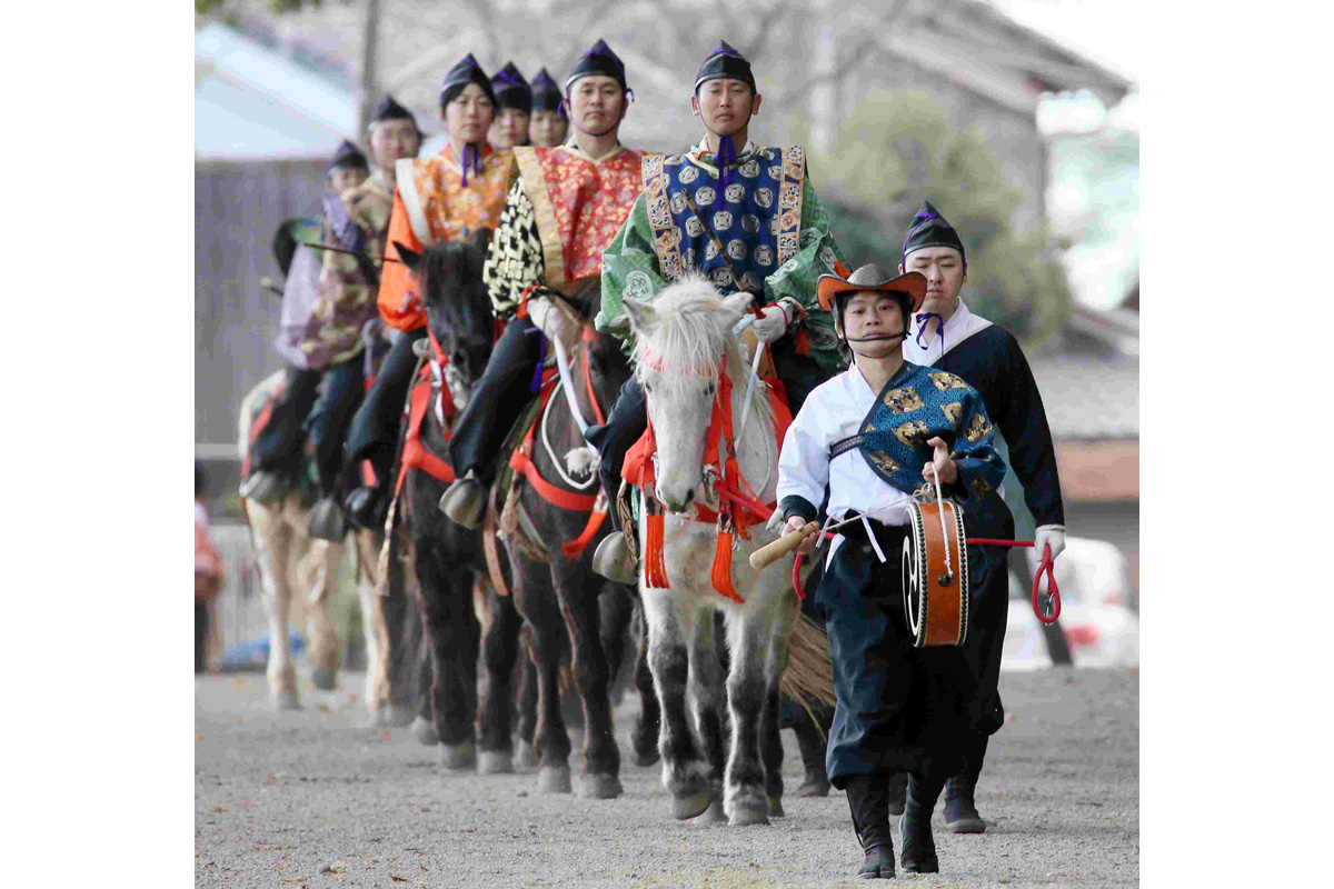 1月の第2日曜日には、新年で初めて馬の背にまたがり、馬たちと馬に関わるすべての人々の1年の幸せを祈願する全国随一「馬・競馬・乗馬 安全祈願大祭」「乗初式」、5月6日には平安時代から続く古式競馬神事(くらべうましんじ)「足伏走馬」(あしふせそうめ)、また、11月30日には人馬一体の武芸を神様に捧げる「馬上武芸奉納祭」があります。