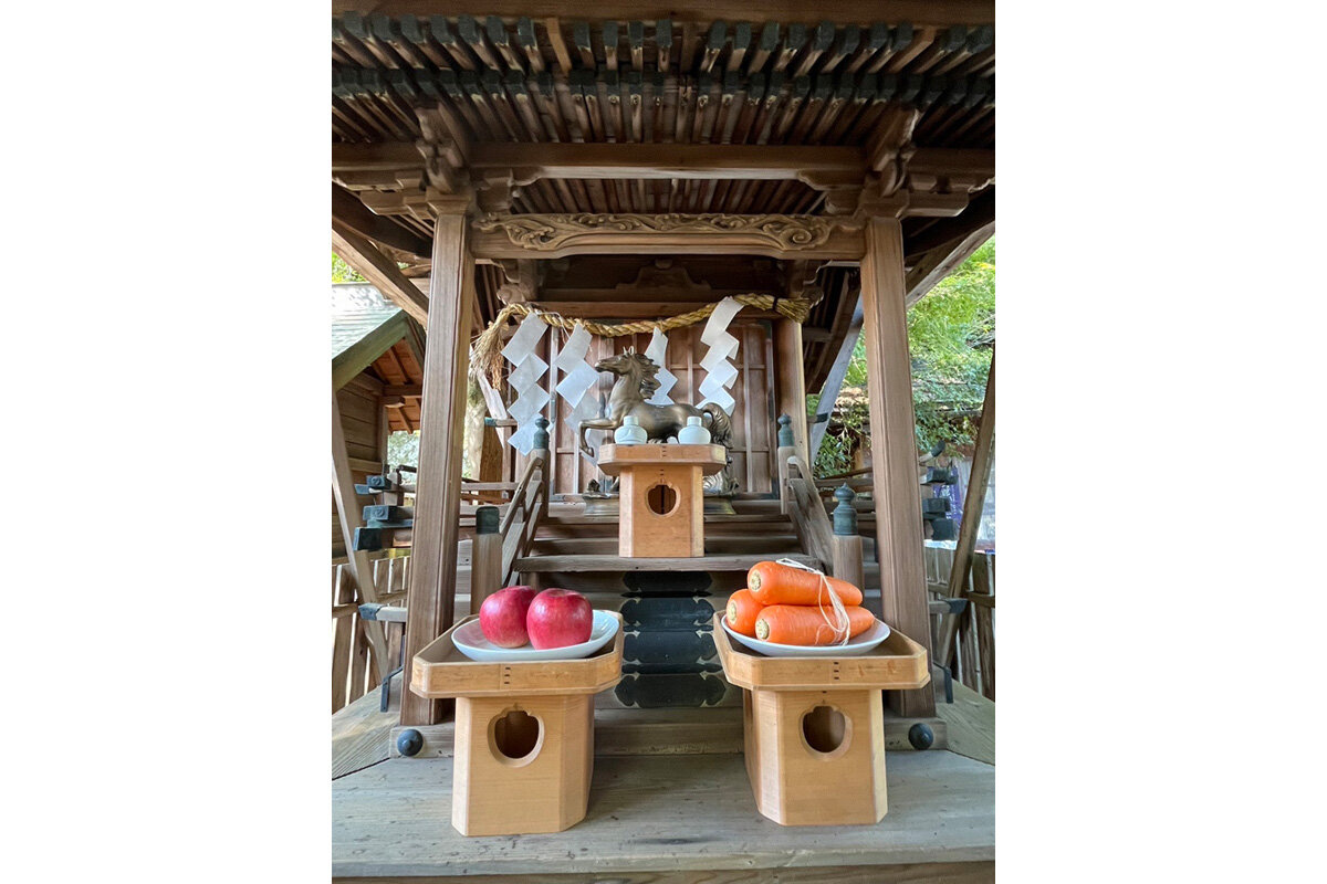 10月17日には馬神神社の例祭があります。馬が大好きなリンゴとにんじんが供えられて祝詞(のりと)が上げられ、馬の安全を祈願します。