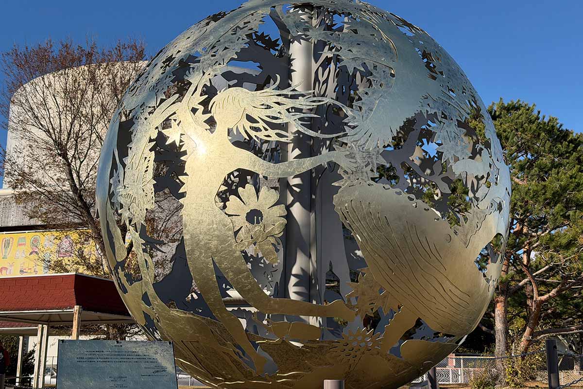 場所は、「国立民族学博物館」横にある「万博記念公園自然文化園」の日本庭園前ゲートすぐ。“いのち球”は屋外に設置され、入園すれば観覧は自由です。入園料は大人260円、小中学生80円。