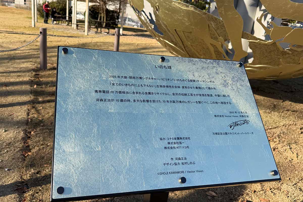 大阪・関西万博の会場中央に位置していたシグネチャーパビリオン「いのちをめぐる冒険」。同パビリオンを象徴するモニュメント“いのち球”が2025年12月5日(金)、1970年大阪万博の会場だった「万博記念公園」(大阪府吹田市)内に移設され、記念セレモニーが開かれました。