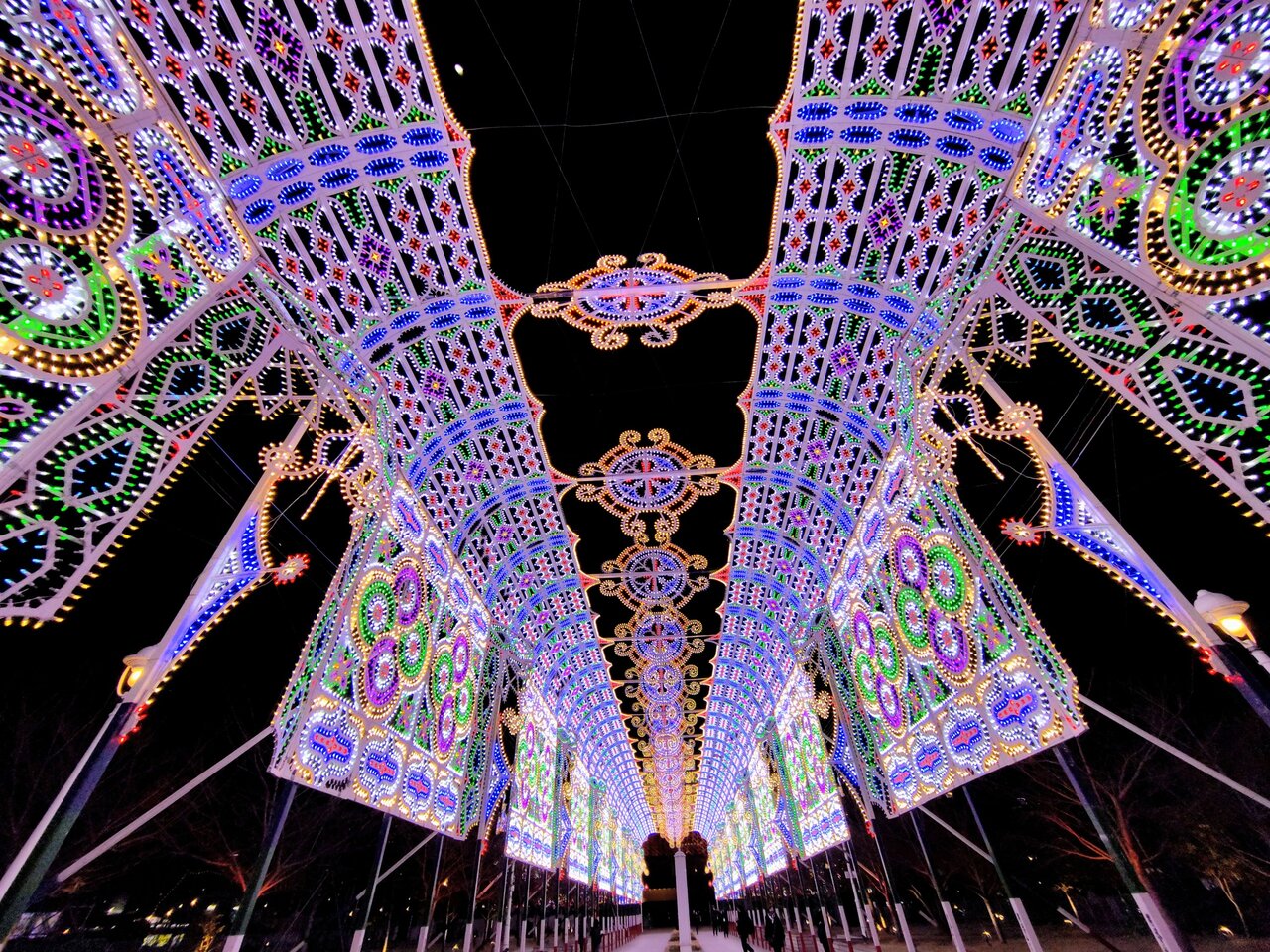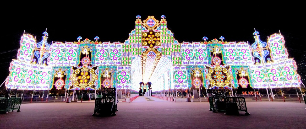 一部有料エリアのメリケンパークには、「海を望む宮殿」が登場。幻想的な光の中をくぐり抜けて歩くことができる延長75メートルに及ぶ光の回廊「ガレリア」や、幅48メートルの「フロントーネ」が来場者を迎えます。海風を感じながら、圧巻の光の芸術を楽しむことができます。