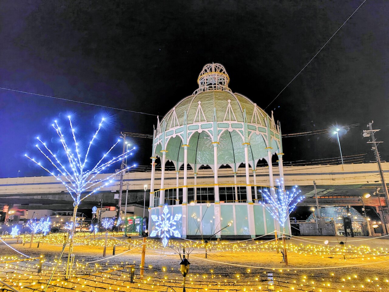 メリケンパークへ向かうと、波止場町緑地に光の聖堂「カッサアルモニカ」(高さ約11メートル)が鎮座しています。3会場を楽しく巡ってもらおうと、今年初めて設けられた作品で、散策の途中もワクワクが続きます。