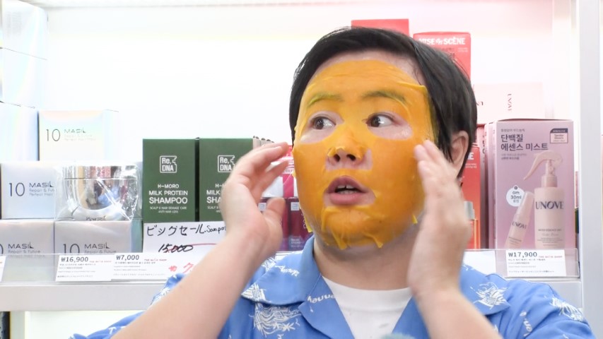 クイズの後、なぜか山里が韓国で話題の韓国の最新エステを体験する流れに。