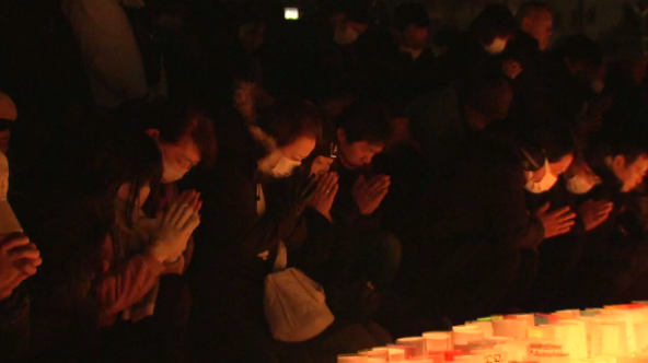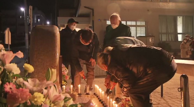 神戸市の中心に位置する東遊園地。毎年多くの人が集まって追悼や復興を祈念する場となっており、「慰霊と復興のモニュメント」には震災犠牲者の名前が刻まれた銘板が設置されている。番組では竹灯籠の明かりのもと、追悼の祈りがささげられる様子を中継する。