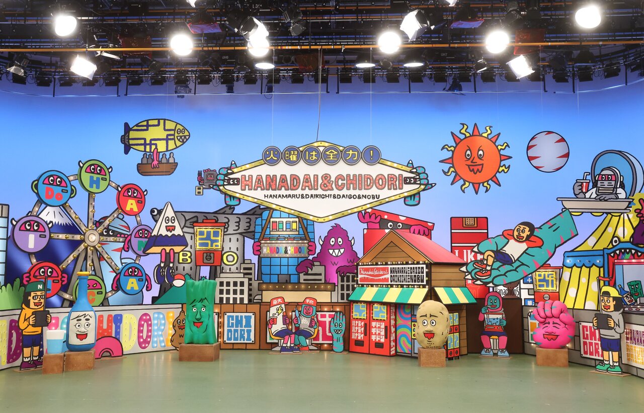 新しいビジュアルでは、MC4人が“4人5脚”に挑む姿を採用。息を合わせて走る表情豊かな4人の姿から、番組の持つチーム感や親しみやすさ、そして何ごとにも全力で向き合う空気感を表現しています。番組を初めて見る方にも、「この4人が一緒にいるだけで面白そう」と感じていただけるビジュアルに仕上がりました。さらにスタジオセットは、MC陣とも親交の深い芸人・ネゴシックスさんに新たにデザインをオファー。これまでの番組らしい世界観を活かしながら、観覧車やサーカス、メリーゴーラウンドといったモチーフを取り入れ、どこかワクワクする“大人の遊び場”のような空間に生まれ変わりました。加えて、大量の電飾によって、よりきらびやかで高揚感のあるスタジオに。ノブさんが思わず「台湾の元気な街」と表現したほど、にぎやかでエネルギッシュな新セットが完成しました。週の前半、少し疲れがたまる火曜の夜に、何も考えずに笑える1時間を届けたい。6年目を迎えた『華大さんと千鳥くん』は、新たなビジュアル、新たなセットとともに、これからもチーム一同“全力”で、皆さまに笑いをお届けしてまいります。
