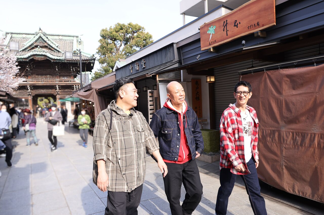 オープニングでは、以前小峠と訪れた街の写真館で撮影した写真を見ながら、3人の軽快なトークがさく裂。小峠が「寺とか神社とか好きっすよね」と番組の方向性を察知したかのようにツッコミを入れるなか、一行はまず東京・葛飾区の【柴又帝釈天】で番組成功と厄除けを祈願。そして、映画『男はつらいよ』の舞台として知られ昭和レトロな雰囲気が漂う、【柴又参道商店街】へと繰り出し、気になったお店に立ち寄りながら散策をする。立ち寄った【つけもの丸仁】では、次から次へと試食を堪能。きくらげとたけのこのコリコリっとした食感にフライドガーリックの香ばしさとラー油のピリッとした辛さが特徴的な“たけのこラー油きくらげ”とおつまみ用に少しだけピリッとさせた“つまみエリンギ”などを味わい「うまい」が止まらない食べっぷりを披露する。おいしさに夢中になるあまりに、柴田が思わず「(放送がここで)1週終わっちゃうよ」と放送時間を心配する事態に。それでも山崎は「他にもオススメあります?」とマイペースに食べ続け、その自由奔放な姿に小峠も感心。その後も、柴又参道商店街の散策が続く。