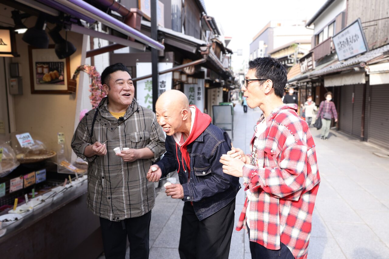 記念すべき初回放送のゲストは、『アンタッチャブルの早速行ってみた』時代から大活躍で、YouTubeでは結婚報告までしてしまった、小峠英二(バイきんぐ)。信号待ちをする小峠を見つけたアンタッチャブル・山崎弘也が「もう始めちゃおうよ」と、突如カメラを回し始めるという型破りなスタート。まだ状況を把握しきれていない小峠は「どういう入り方ですか」と困惑気味。さらに、アンタッチャブル・柴田英嗣から「この番組がYouTubeから地上波に復活した」と告げられた小峠は「どういうことですか。そんなパターンあるんですか。えっ、これ地上波⁉」と驚きを見せる。すかさず山崎が「とは言っても、やることは(YouTube版)と一緒ですから」と続けると、小峠も「神社始まりで、酒飲んで終わりでしょ」と見事な切り返しで笑いを誘う。そんな3人のやり取りが、この番組のゆるく自由な空気感を物語る。