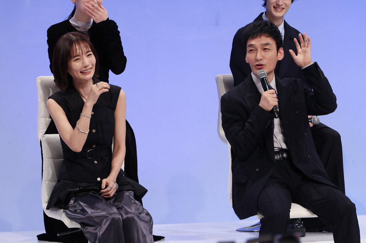 出演者の草彅剛さん、中村ゆりさん、八木莉可子さん、塩野瑛久さん、小澤竜心さん、要潤さん、国仲涼子さん、古川雄大さん、月城かなとさん、中村雅俊さん、風吹ジュンさんが出席し、草彅さん自らが盛り上げ役となって作品の見どころなどについて話しました。