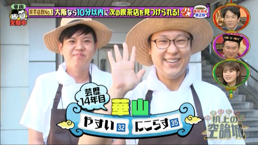 この空論の提唱者は、グルメブロガーのM三郎さん。前回は、華山の2人が天満駅から弁天町駅まで約7kmの喫茶店ハシゴ旅に挑戦しましたが、惜しくも弁天町駅の手前で失敗となってしまいました。さらに、スタジオから崋山・にこらすに「おちょけ禁止命令」が出されました。本来ツッコミ担当の崋山・にこらすに対して、スタジオからはツッコミ担当を全うしてほしいとの思いが込められていましたが、これについては「それを封じられたら、しゃべられない」(崋山・にこらす)「真面目にゴールを目指せってこと!?」(崋山・やすい)と戸惑いを隠せません。マジ論を目指しつつ、崋山の2人からどんな笑いが生まれるのかにも注目です!