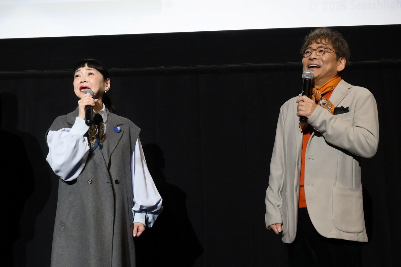 会場がどよめきに包まれる中、顔を隠したフレイザーさんが「ハジメマシテ!」と登場。吉本新喜劇が大好きだという大阪出身のHIKARI監督のために、吉本新喜劇の内場勝則さんと未知やすえさん夫妻も応援に駆けつけ、思わぬ新喜劇モードに突入しました。