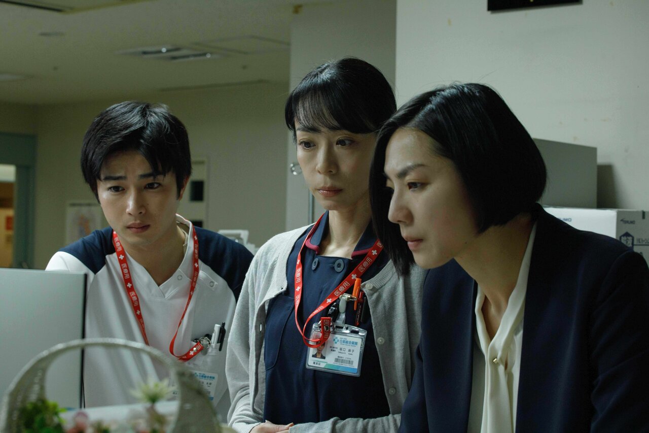 ドラマ『顔のない患者-救うか、裁くか-』6話 萩田太朗(曽田陵介)、坂口麻子(遊井亮子)、高槙倫(梅舟惟永)